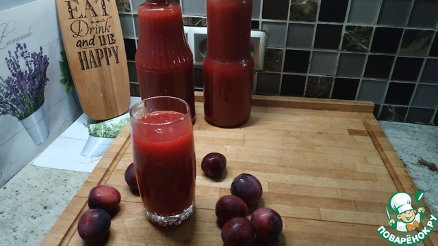 Сезон заготовок продолжается. А я ещё веду очередной бой в саду, теперь со сливой. Уже приготовила компоты, варенье, соус, а сливы никак не хотят заканчиваться. Ну что же, будем готовить сок. У меня с этим соком ассоциации с детством, рядом с детским садом был овощной магазин, в котором продавали соки на розлив. После садика мы заходили в него и стакан именно такого сока было обязательным условием.