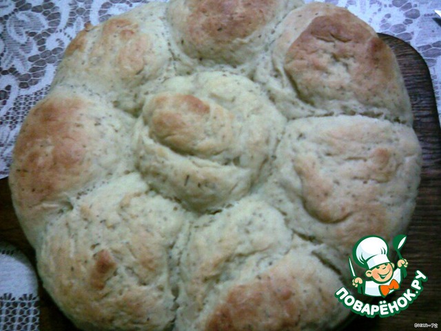 Нежный хлебушек с ароматными травками. Моя первая попытка испечь хлеб. Конечно, до Ирины (биа46) мне очень далеко, но, как говорится, дорогу осилит идущий. Рецепт из журнала "Единственная"