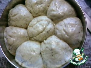 тесто разделить на 8 частей, сформировать шарики, уложить в форму и поставить в теплое место