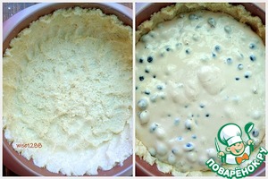 Разогреть духовку до 180 градусов. Форму для выпечки (у меня 20 сантиметров) я не смазываю маслом, тесто и так достаточно маслянистое. Тесто распределить по форме, сформировать корзинку, равномерно создать толщину стенок и дна. Высота стенки 4,5 сантиметра. В сформированную из теста корзинку перелить начинку. Выпекать при температуре 180 градусов 45 минут.