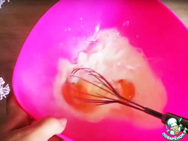 В глубокую посуду добавляем теплое молоко и яйца затем хорошо перемешиваем