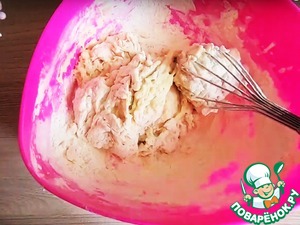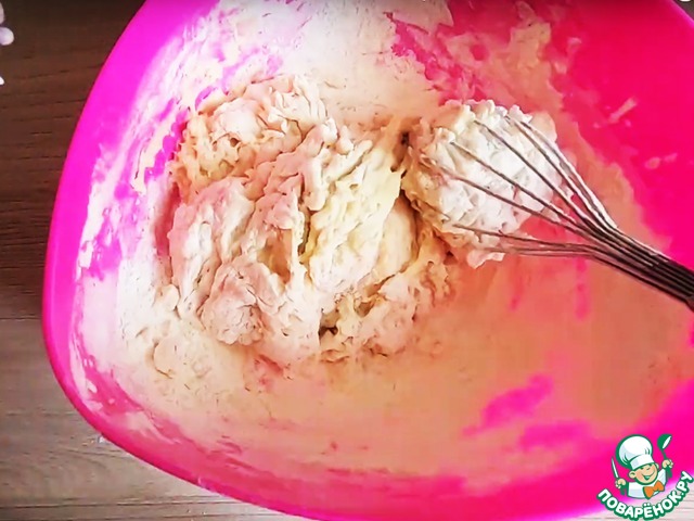 Затем постепенно добавляем муку и хорошо перемешиваем до получения теста
