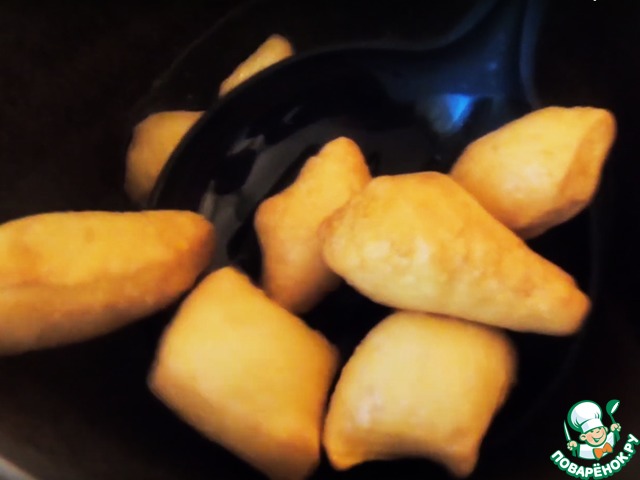 После того как мы обжарили наши баурсаки до золотистости вытаскиваем их