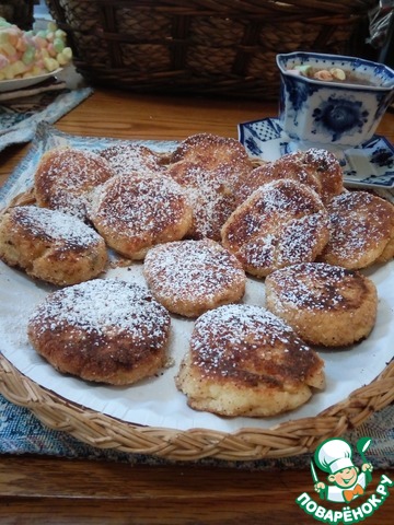 Сегодня я хочу поделиться с вами, уважаемые поварята, рецептом сырников. Казалось бы, что особенного в этом чудесном лакомстве, рецептов их приготовления великое множество. Я тоже так думала. Однако перепробовав массу рецептов, пришла к выводу, что все- таки я должна сама, для себя, разработать ту рецептуру, которая по всем показателям устроит меня. Сырники действительно получились очень творожными, без лишней клейкости и вязкости, ощущения непропеченности, прожаренности. Они отлично держат форму, в меру сладкие и очень вкусные. И еще хотелось бы отметить то, что жирность творога в рецепте вовсе не играет ни какой роли. Эти сырнички я делала из творога жирностью всего 3%. Единственный нюанс, это должен быть творог, а не творожная масса!