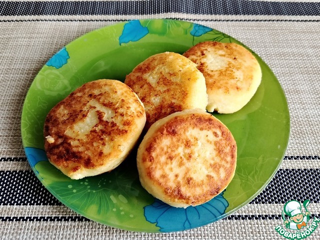 Творог был сухой поэтому я не отжимала его а просто блендером размяла, остальное все добавила и снова блендером размяла а затем еще руками замесила. Оставляла на ночь а утром присыпала стол мукой раскатала колбаску как по рецепту и сформировала сырники (руки мукой тоже обваляла) получились мягкие творожные, мне и мужу зашли.