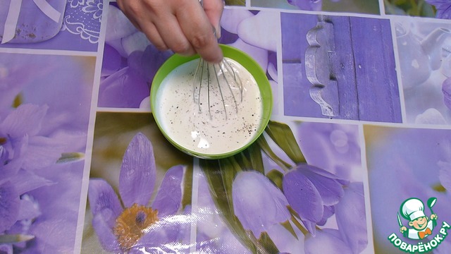 Добавляем горчицу. Соль и перец черный по вкусу.