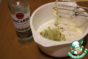 Ввести просеянную с разрыхлителем муку, ром и цукаты. Перемешать.