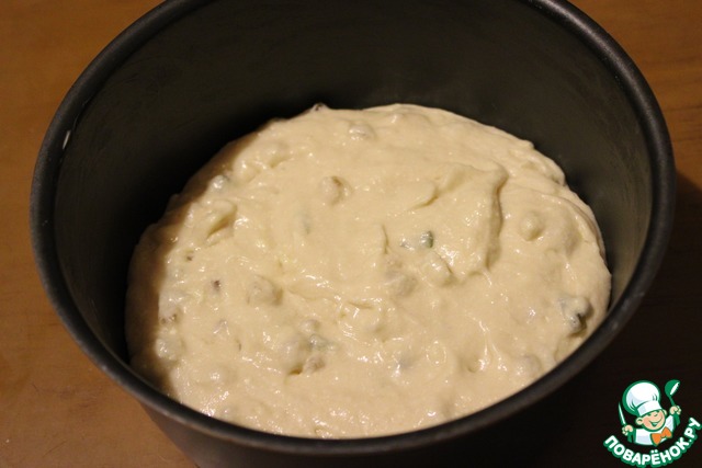 Форму диаметром 20 см смазать маслом. Выложить тесто и поставить в разогретую до 180С духовку.
