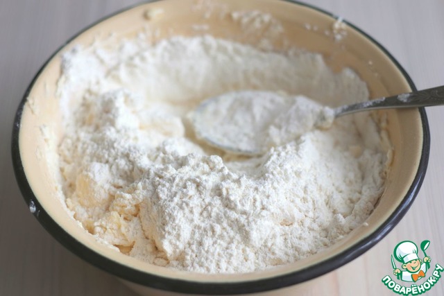 В отдельной миске соединить муку (250 гр.) и соду для выпечки (1 пакет).