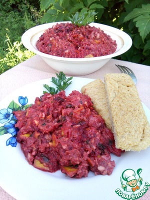А после добавила готовую свеклу к кабачкам и перемешала.