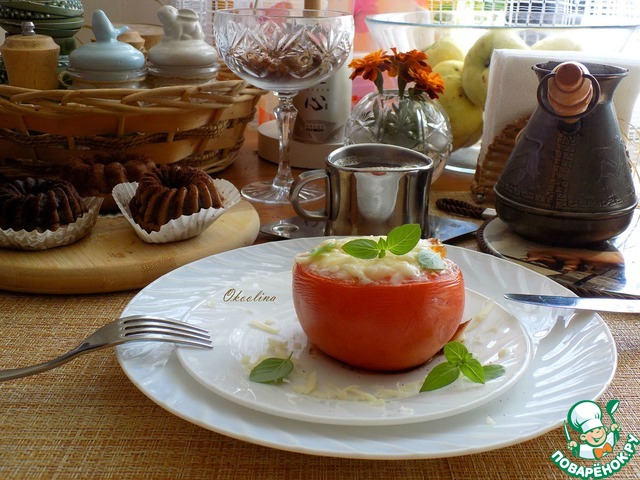 Я взяла крупный мясистый помидор. У такого меньше сока. Срезала "крышечку"