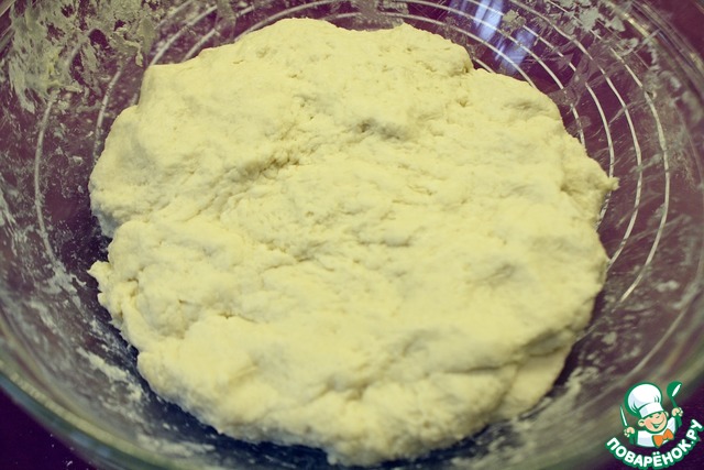 Оставшийся шар разминаем в лепёшку и тонко раскатываем на подпыленной поверхности мукой в большой и тонкий круг. Когда я решил приготовить лепёшки, то мне этот момент показался практически не выполнимым, но тесто получилось настолько эластичным и податливым, что я справился без особого труда и даже загордился своими умелыми ручками...