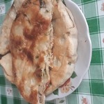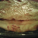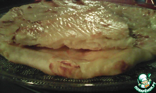 Вот так выглядит вторая сторона через пять минут. Ту же процедуру проделываем с остальным тестом и начинкой, итого у нас получается четыре вкуснющих лепёшки...