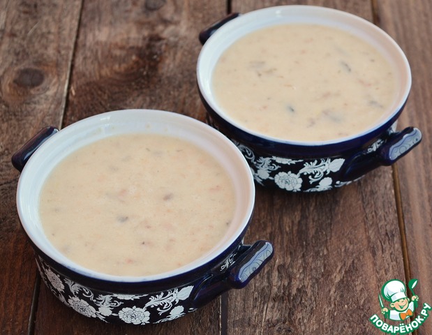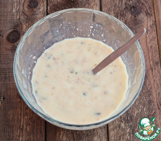 Поскольку жидкости в разных консервах бывает разное количество, то сначала замерьте её, а затем долейте молоко. Общий объем молока+жидкости от консервов должен быть 300 мл. -