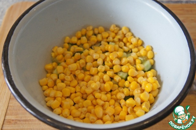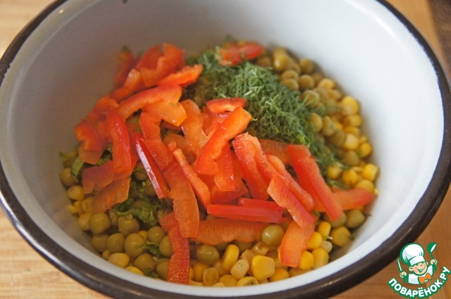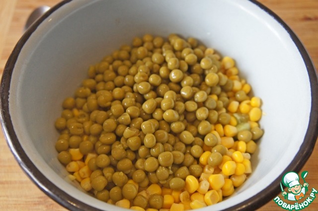 Рецепт «Грибной салат с кукурузой и зеленым горошком»: