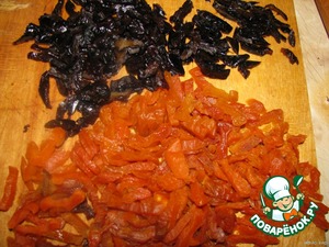 Курагу и чернослив хорошо промыть и нарезать соломкой.