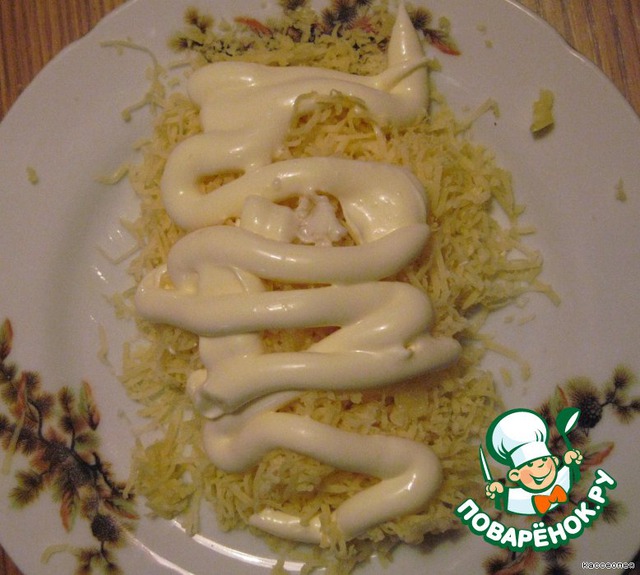 ... добавляем майонез и маленький зубчик чеснока (кто не любит, можно не добавлять)...