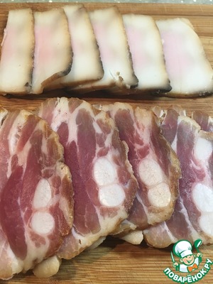 Ингредиенты для «Сало и грудинка холодного копчения»: