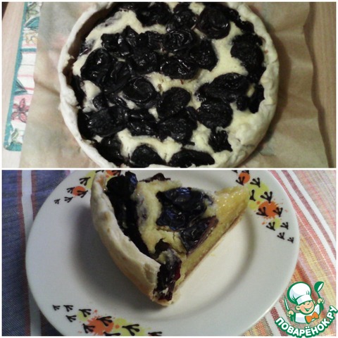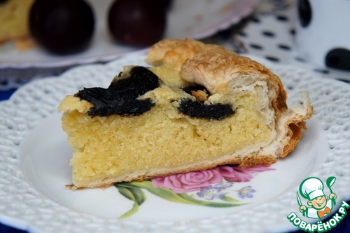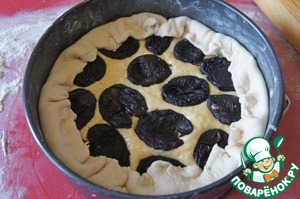 Сверху распределить чернослив, слегка его вдавливая в миндальное тесто.
