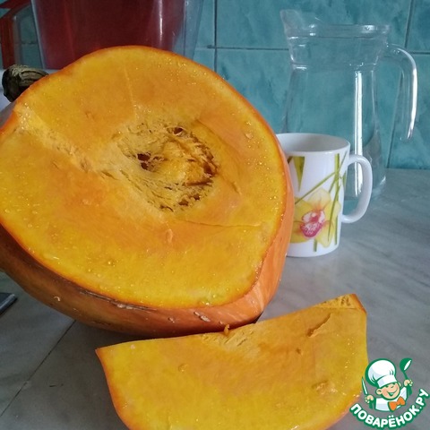 Берём тыкву и отрезаем от нее столько, сколько вам понадобится для вашего завтрака. У меня получилось где-то так. Чистим нашу тыкву, нарезаем кубиками.