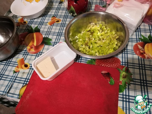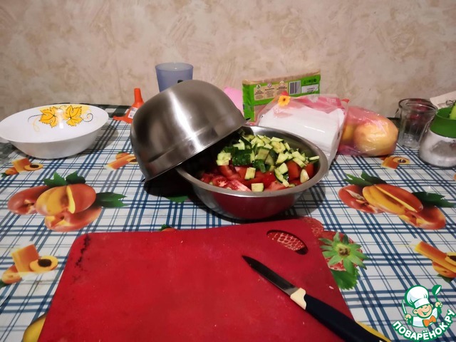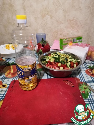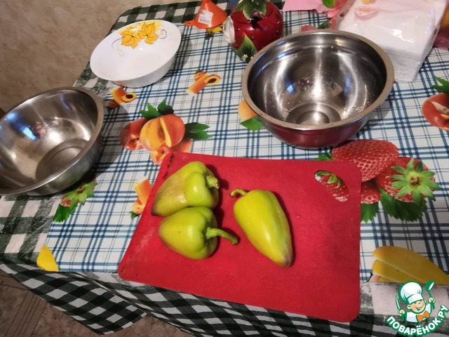 Необходимо помыть перцы, избавиться от семян и покрошить кубиком. Перцы и брынза формируют 80% вкуса. Я выбираю перец по запаху и упругости. Хотите что бы хрустело за ушами - делайте так же.