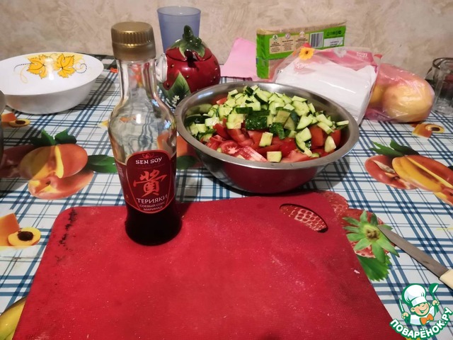 • Как вы могли заметить в рецепте не указана соль. Она есть в брынзе и в соевом соусе. Можно использовать обычный или тирияки. Главное знать меру, что бы салат приобрел легкий оттенок, а не вкус сои. Мне хватает примерно чайной ложки или даже чуть меньше.