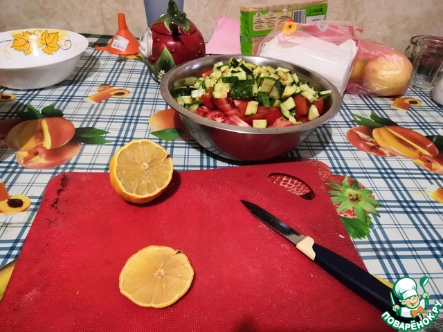 • Лимон - отлично сочетается с соевым соусом и добавляет приятную кислинку. Выдавливаем немного сока в салат. Я выдавил отрезанный кусочек.
