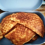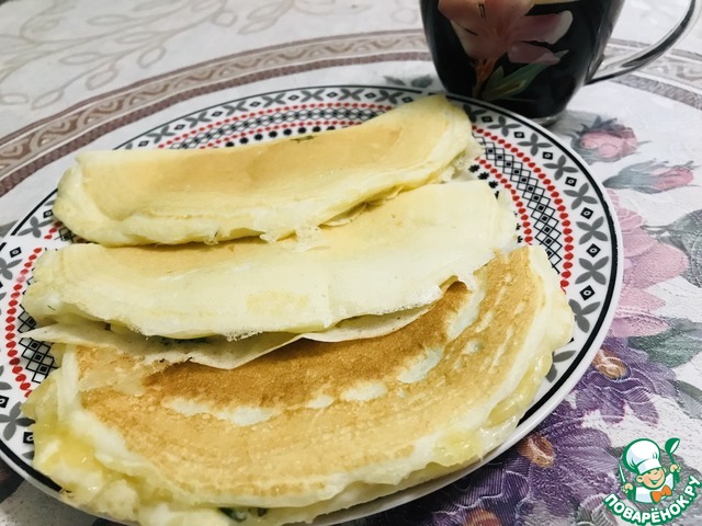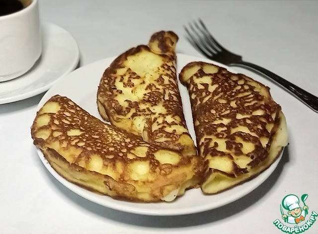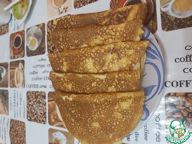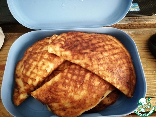 Складываем пополам и ещё держим по пол минуты с каждой стороны... В итоге получаются четыре штуки!!!... Как жаль, что в наше время не было таких прикольных рецептов и мы питались исключительно в школьных столовках, максимум что брали с собой, это какие-то не затейливые бутерброды.