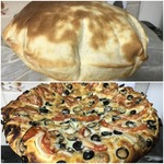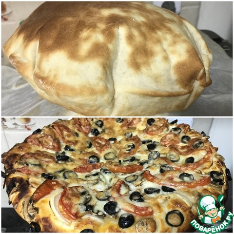 [+5]Ну а теперь ещё один казус с этой пиццей. Сколько я не пыталась приготовить питу, никогда у меня не получались кармашки, и как же я была удивлена когда заглянув в духовку за первым коржом я там обнаружила питу с очень большим кармашком (для экономии времени выпекала при 250 градусах).