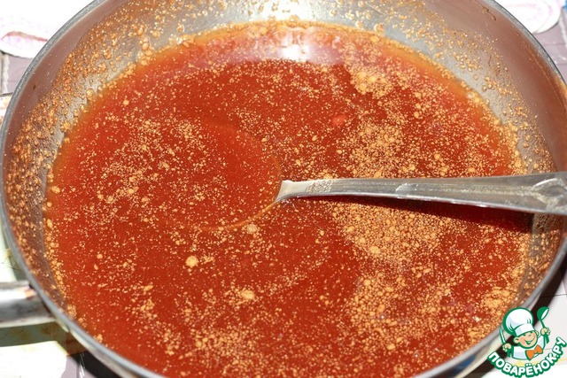 Пока маринуется курица, сделаем соус. Смешать уксус, сахар, соевый соус, томатную пасту, воду и смесь 5 специй.