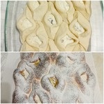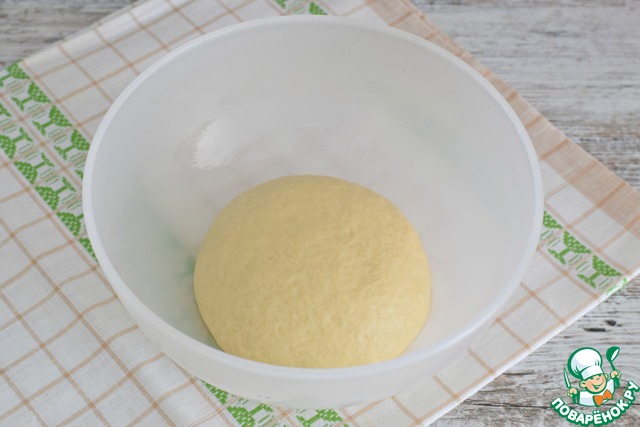 Подошедшее тесто выложить на рабочую поверхность, смазанную слегка раст. маслом, обмять, разделить на 11 (12,13...) равных частей. Каждую заготовку округлить. |