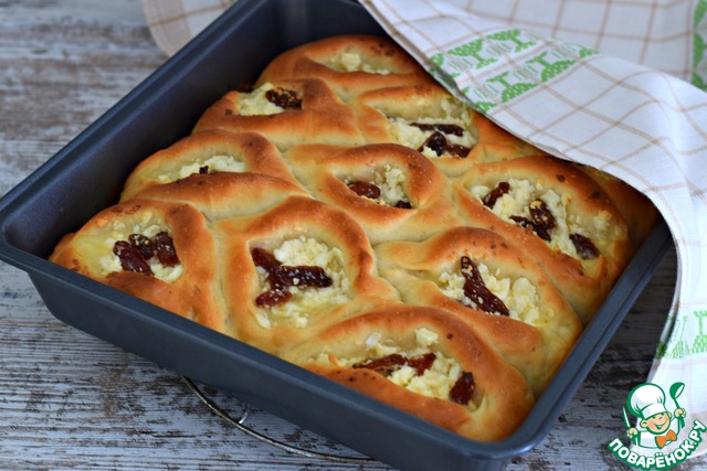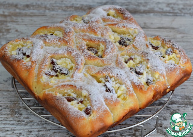 Рецепт "Пирог разборный с творогом и изюмом":