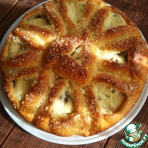 Описание: Пирог с творогом и изюмом. Классика, проверенная временем. Мягкое, воздушное тесто. Нежная, сочная начинка. Интересная формовка. И готовится этот пирог совсем несложно. Попробуйте! Это вкусно.