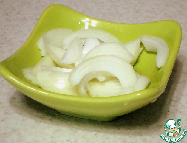 Репчатый лук нарезать полукольцами или перышками.
