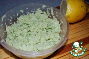 Авокадо чистим, режем на кусочки и измельчаем в блендере с 1/2 ч. л. лимонного сока. -