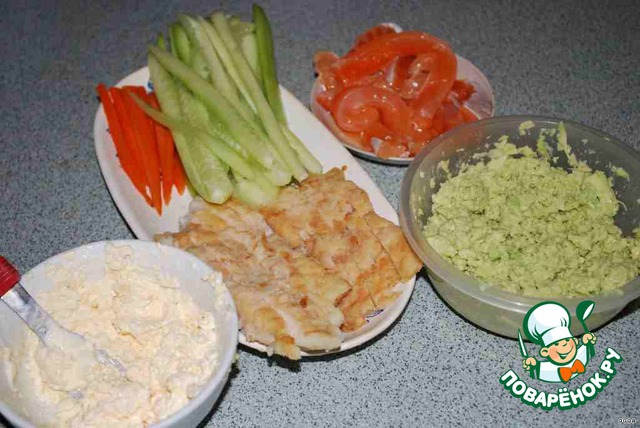 Для начинки я готовила пасту из авокадо и сыр а-ля филадельфия.