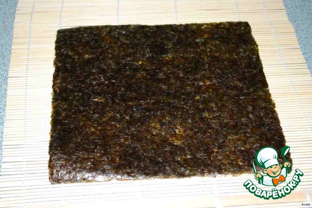 Кладем лист на циновку блестящей стороной к себе.