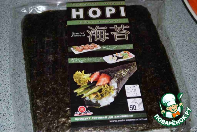 Берем лист нори. У нас продается вот в таких упаковках