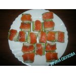 Все остальные ингредиенты: огурец, лосось, окунь, крабовые палочки режем полосками.