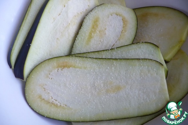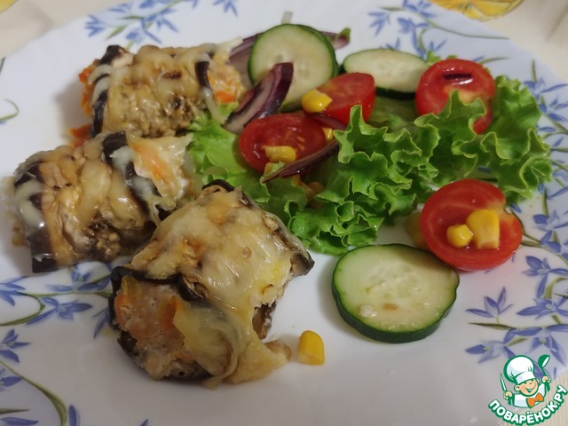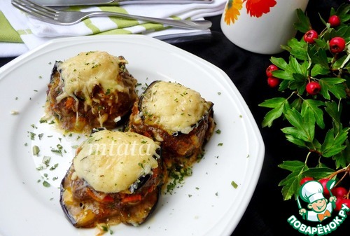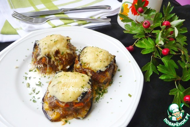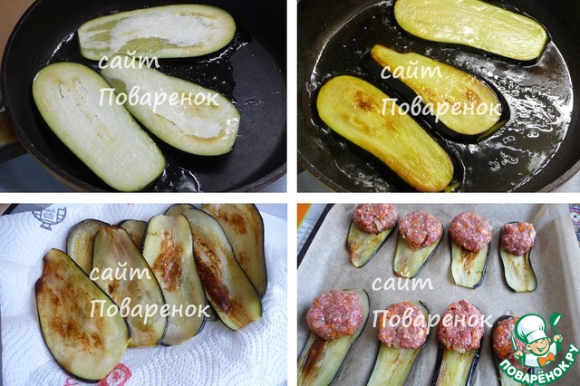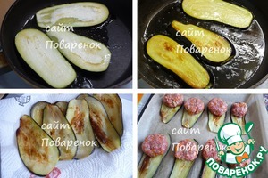 Свободный край баклажана наложить на фарш, слегка прижать.