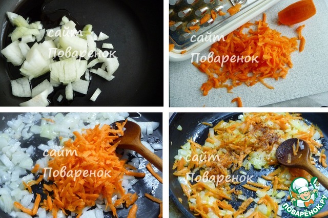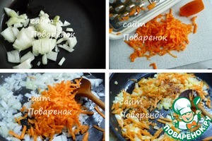 Лук нарезать небольшими кубиками, морковь натереть на крупной терке,