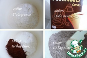 В чаше смешать просеянную муку, разрыхлитель теста, какао-порошок.