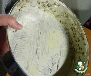 Смажьте форму для запекания маргарином и обсыпьте бока формы семечками