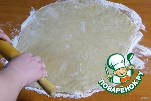 Когда тесто увеличится в 2 раза, раскатайте его прямоугольником толщиной 0.5 см.