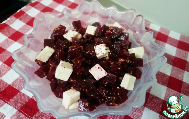 Сыр отправить к свекле, добавить зерненную горчицу, соль,