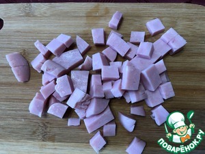 Ветчину нарезать крупными кусочками и пропустить через мясорубку. Анчоусы мелко нарубить. В небольшой миске смешать ветчину с анчоусами, добавить панировочные сухари, 1 яйцо, посолить, поперчить по вкусу, хорошо перемешать.