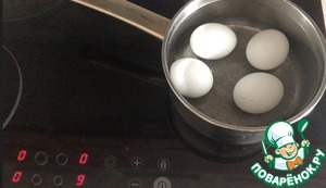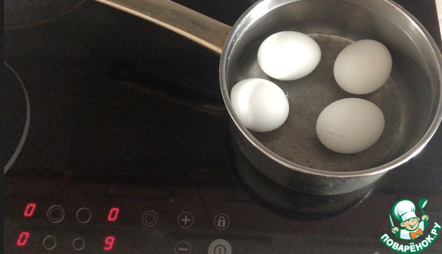 Оставшиеся яйца варить от 4 до 10 мин., в зависимости от того, какие яйца вы любите. Снять с огня, залить холодной водой, отчистить, аккуратно покрыть со всех сторон приготовленной массой.