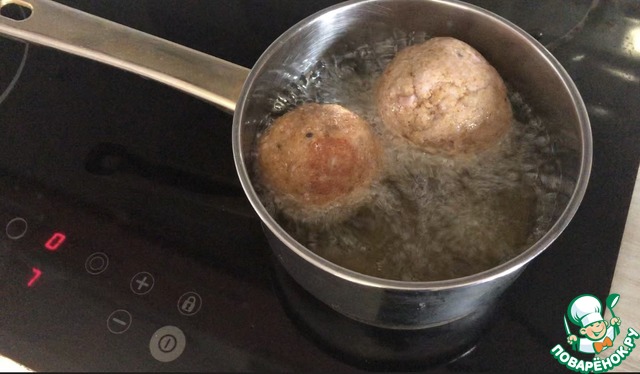 В глубокую емкость влить масло и хорошо его разогреть. Выложить яйца и жарить 5-7 мин до золотистой корочки. Охладить.
