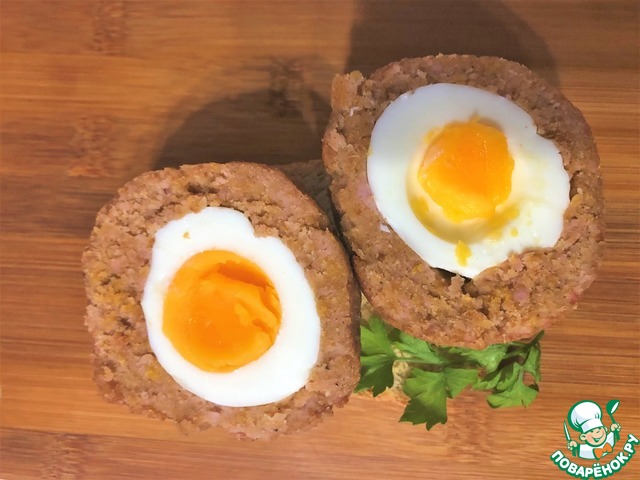 Рецепт «Яйца по-шотландски с ветчиной и анчоусами»: