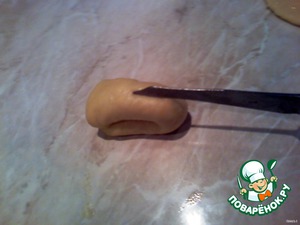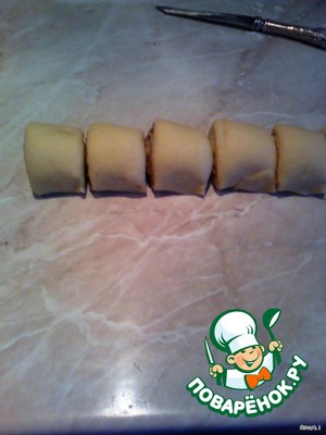 Отрезаем небольшой кусочек от теста и раскатываем